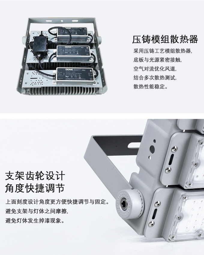 3.釆用壓鑄工藝模組散熱器,底板與光源緊密接觸,空氣對流優(yōu)化風(fēng)道,散熱性能穩(wěn)定